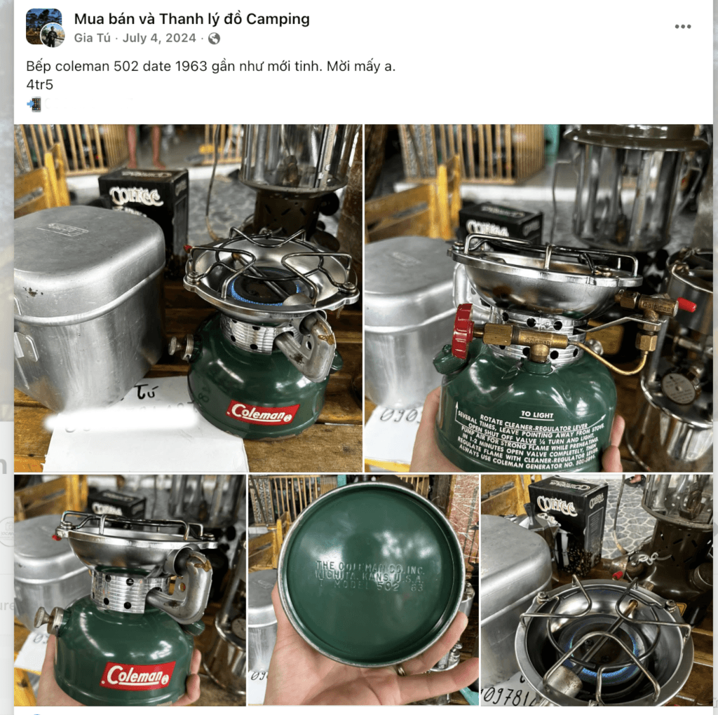 Nhờ “dòng máu quân sự” ấy mà đến nay, bếp Coleman vintage (kể cả 502 của anh) vẫn được dân chơi yêu thích vì độ tin cậy “chiến trường” – cháy ổn định ở lạnh giá, gió mạnh và ít hỏng vặt. Anh cầm chiếc 502 date 68 là đang sở hữu một phần di sản từ những chiếc bếp đã theo lính Mỹ qua hai cuộc thế chiến đấy! 🔥🏕️ Nếu cần thêm ảnh hoặc chi tiết model quân sự nào, cứ bảo em nhé! 😊