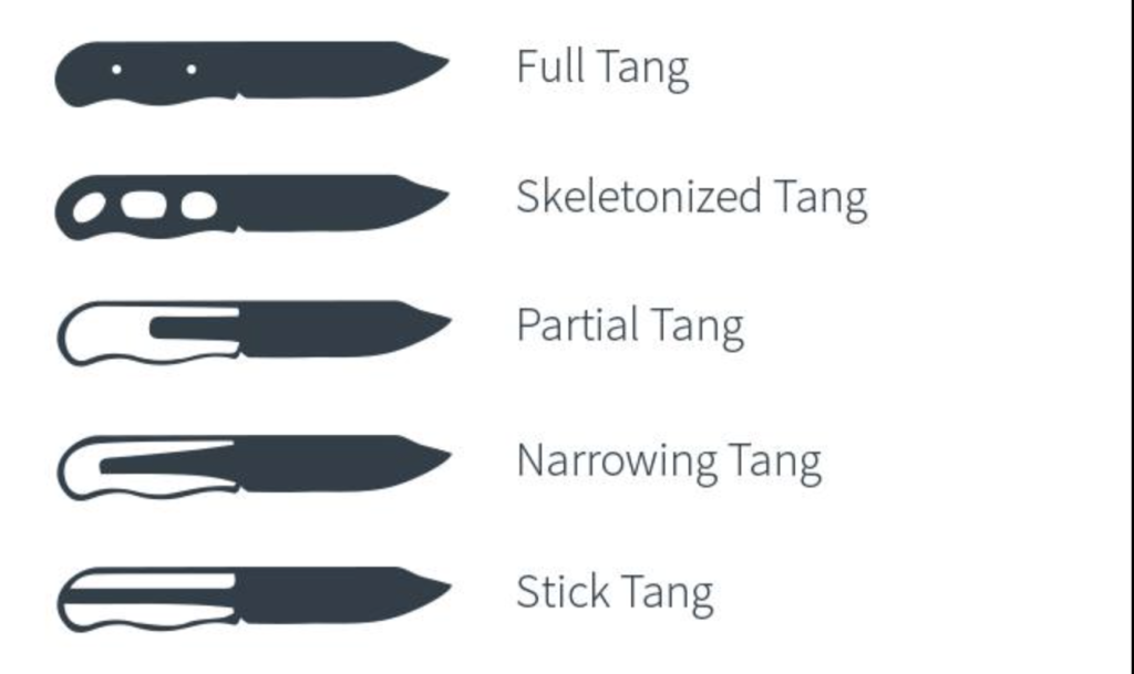 Kết cấu lưỡi dao fulltang chạy dọc tới cán sẽ chắc chắn hơn. Và tất nhiên con dao sẽ nặng … nên các con dao bây giừo thường là skeletonized tang để giảm trọng lượng.