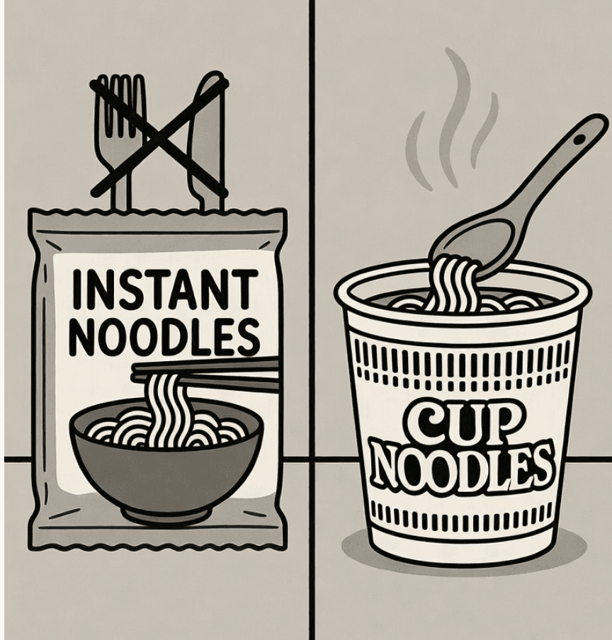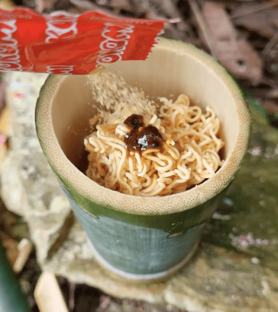 Mì gói là top 1 các món ăn ưa thích nhất trong hoạt động dã ngoại cắm trại. Anh em thường chọn mì ly cho dễ pha, nhưng nhược điểm là cái thiết kế cồng kềnh và khó xắp xếp đồ trong balo nên mang được ít đồ.